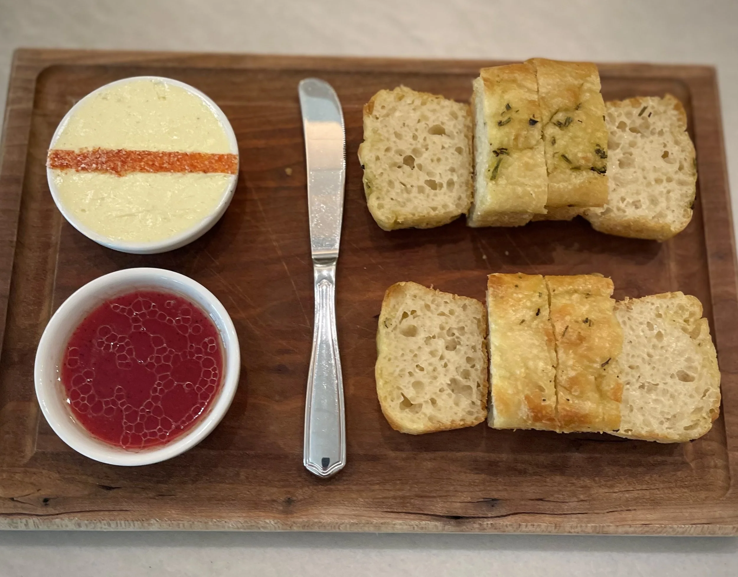 Served with Whipped Foie Butter and Smoked Olive oil with Cranberry Vinaigrette